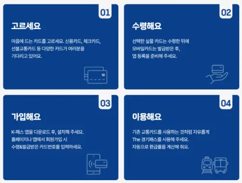 전용 카드 (선불형 또는 후불형) 발급 후, K-패스 홈페이지를 통해 더 경기패스 신청 회원가입을 하면 됩니다.
