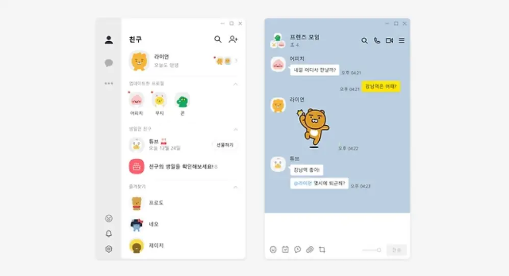 - 모바일 버전과 동일하게 친구들과 텍스트 메시지, 사진, 동영상 등을 주고받을 수 있습니다.
