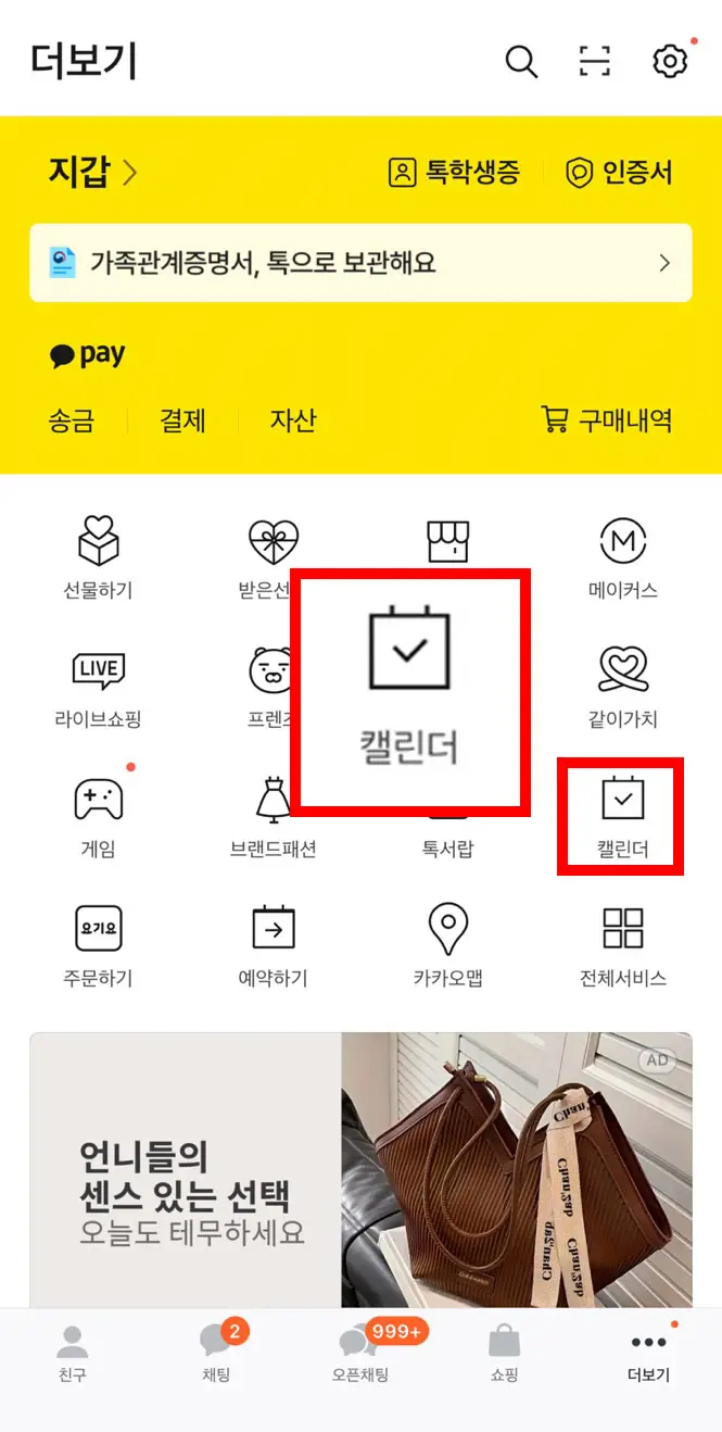 이번 방법은 카카오톡 캘린더를 활용하는 것입니다.