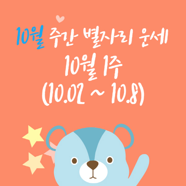 10월 1주 (10.2 ~ 10.8) 양자리 황소자리 쌍둥이자리의 운세를 알아보실 수 있어요.