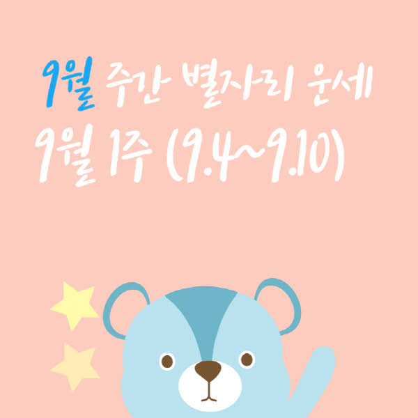 9월 1주 (9.4 ~ 9.10) 양자리 황소자리 쌍둥이자리의 운세를 알아보실 수 있어요.