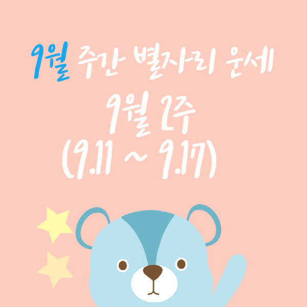 9월 2주 (9.11 ~ 9.17) 양자리, 황소자리, 쌍둥이자리의 운세를 알아보실 수 있어요.